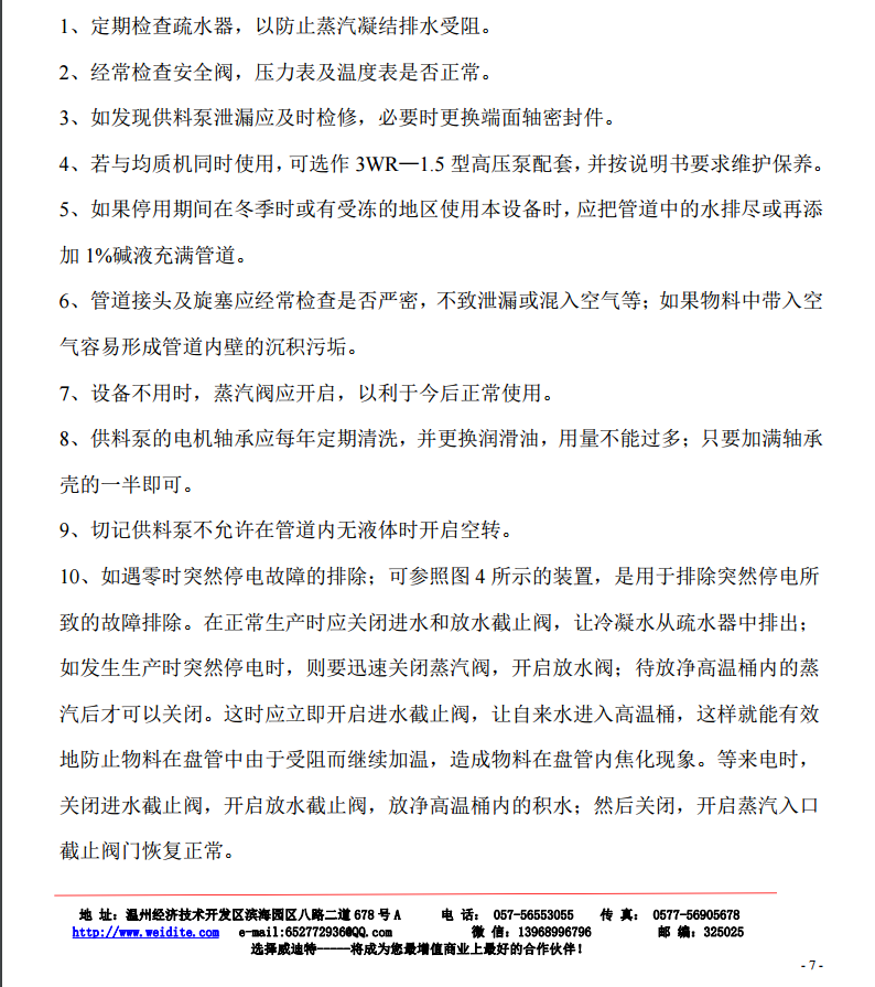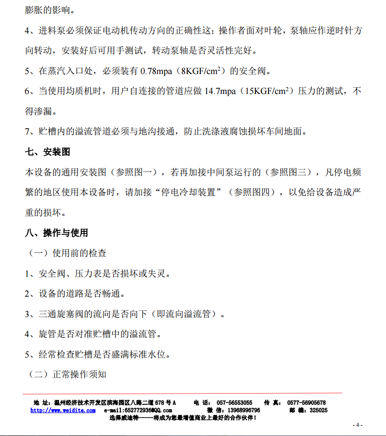 (3)使用蒸汽压力: < 0.78 mpa