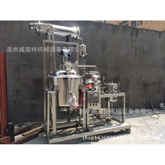 该设备的整个提取过程均采用封闭式循环系统完成。可以在大气压或大气压下提取。无论是金银花提取,酒精提取,油提取还是其他目的,给定过程中的所有金银花都必须根据药物的性能要求自行切割。提取罐是为金银花的沸腾提取过程设计的多功能设备,可以提取酒精,回收酒精并分离出挥发油。除提取罐的主要设备外,它还配备了泡沫阱,冷却器和油水分离器。这些仪器由不锈钢制成,与药物接触,压力容器检查部门对中间层的加热进行了严格测试。在萃取过程中,它由冷凝器,油水分离器等组成,并具有完全封闭的循环系统,同时还从废物中回收有机溶剂。