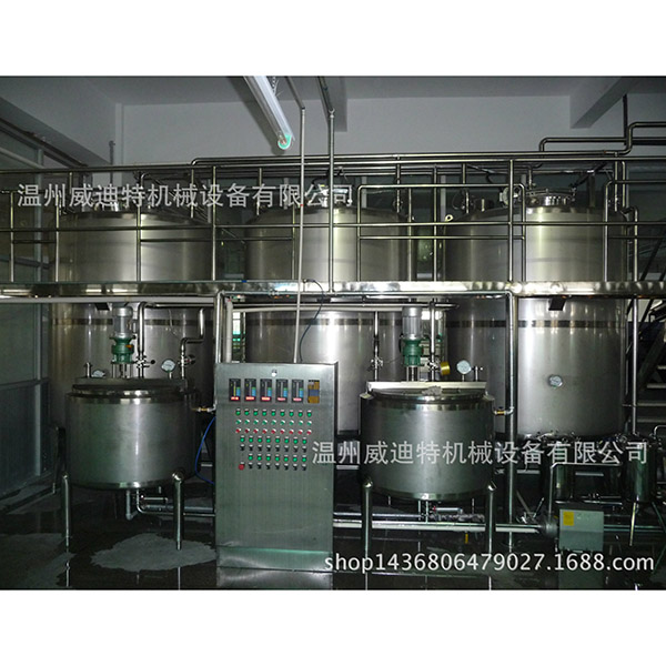二、饮料配料灭菌系统详解:糖浆制取并与果汁、添加剂在调配罐内调配后灭菌。