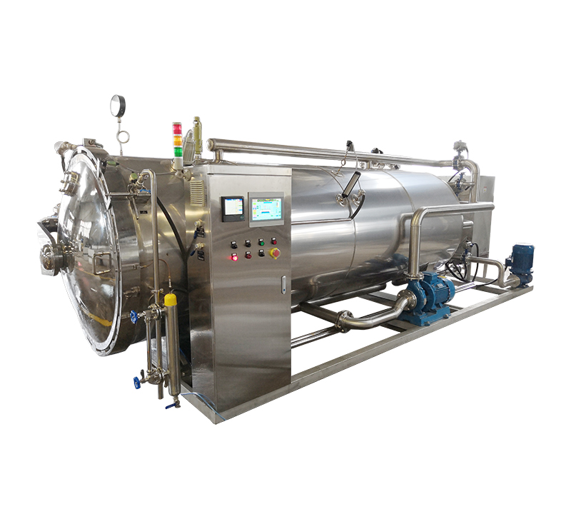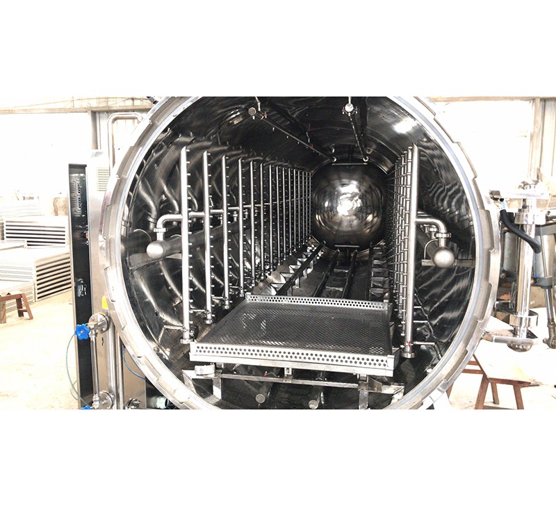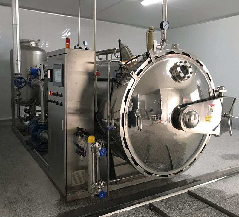 该设备由锅体、锅盖、开启装置、锁紧模块、安全联锁装置、轨道、灭菌框、蒸汽喷管及若干管口等组成、锅盖密封采用充气式硅胶耐温密封圈,密封可靠,使用寿命长。具有受热面积大,热效率高、加热均匀、液料沸腾时间短、加热温度容易控制等特点、杀菌锅主要用于食品行业、医药等各领域。
